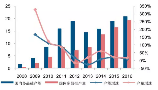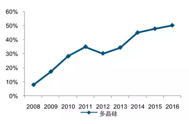 2016 年國產多晶硅產量在全球的比重也已超過 50%