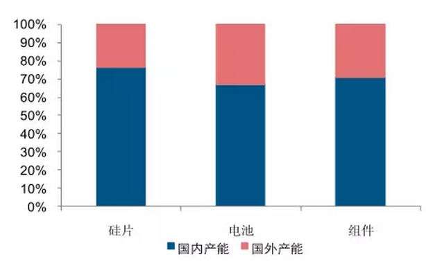中國是全球光伏的主要生產國,三大環(huán)節(jié)占比均接近 70%