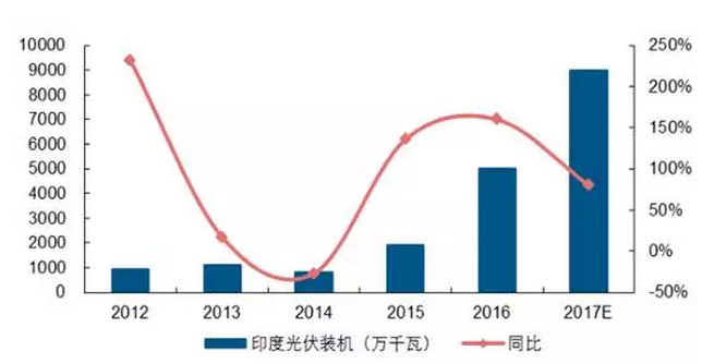 2017-2018 年印度光伏裝機將維持快速增長趨勢