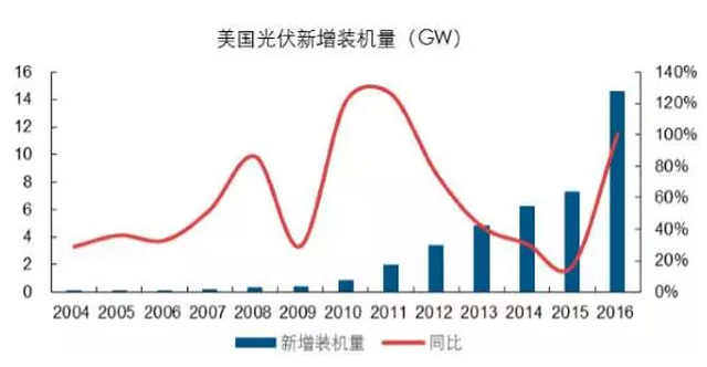 近年來美國光伏裝機規(guī)模持續(xù)擴張