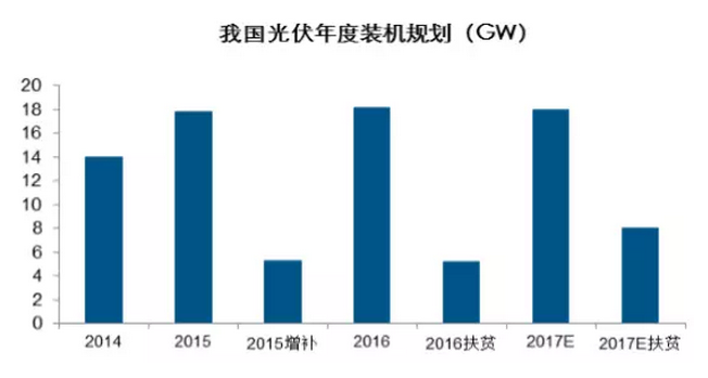 2016 年下發(fā)光伏扶貧規(guī)劃約 4.5GW,2017 年目標預計在 8GW 左右