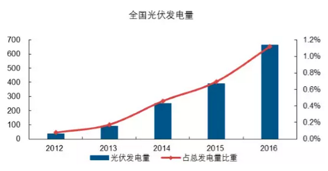 2016 年我國光伏發(fā)電占總發(fā)電量比重僅 1%左右