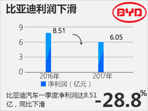 比亞迪日前發(fā)布的一季報顯示,報告期內(nèi),公司實現(xiàn)營收210億元,同比增長3.75%;凈利潤為6.06億元,同比下降28.99%。凈利潤下滑主要是由于新能源汽車領域波動帶來的影響。