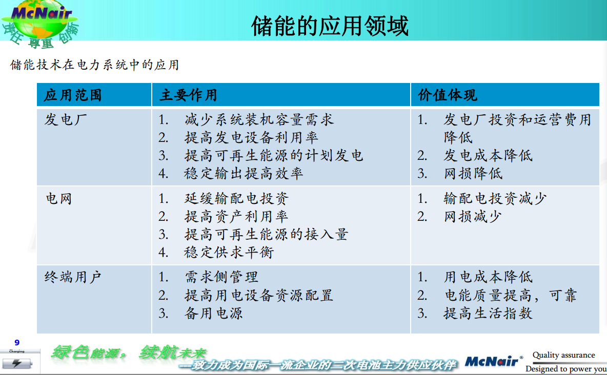第二是針對儲能的應用領(lǐng)域,在發(fā)電側(cè),第一是可以減少系統(tǒng)的裝機容量的需求,第二是提高發(fā)電設備的利用效率。第三是提高可再生能源計劃發(fā)電的計劃,第四是穩(wěn)定輸出提高效率。其價值體現(xiàn),第—,發(fā)電廠投資和運營的費用會降低;第二,發(fā)電成本會降低;第三,網(wǎng)損會降低。