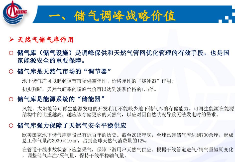 所以儲氣庫可以作為天然氣市場的調節(jié)器,包括作為能源系統(tǒng)的儲能器,保證天然氣的安全供應,也可以保證電力的安全供應。