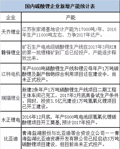 高工鋰電特此梳理2016年國內(nèi)主流碳酸鋰企業(yè)新增產(chǎn)能投擴(kuò)產(chǎn)情況,以期對讀者有所裨益。