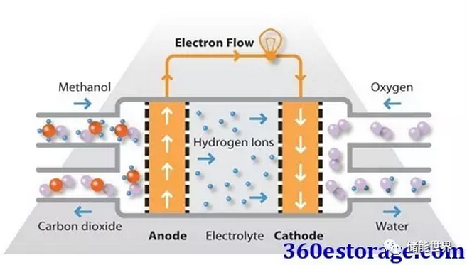 直接甲醇燃料電池(DMFC)是一套相對(duì)較新的燃料電池技術(shù);它是在20世紀(jì)90年代由美國(guó)的幾個(gè)機(jī)構(gòu)的研究人員發(fā)明和開(kāi)發(fā)的,包括NASA和噴氣推進(jìn)實(shí)驗(yàn)室。它類似于PEM電池,因?yàn)樗褂镁酆衔锬ぷ鳛殡娊赓|(zhì)。然而,DMFC陽(yáng)極上的鉑-釕催化劑能夠從液體甲醇中吸收氫,消除了對(duì)燃料重整器的需要。因此純甲醇可以用作燃料,因此名稱。