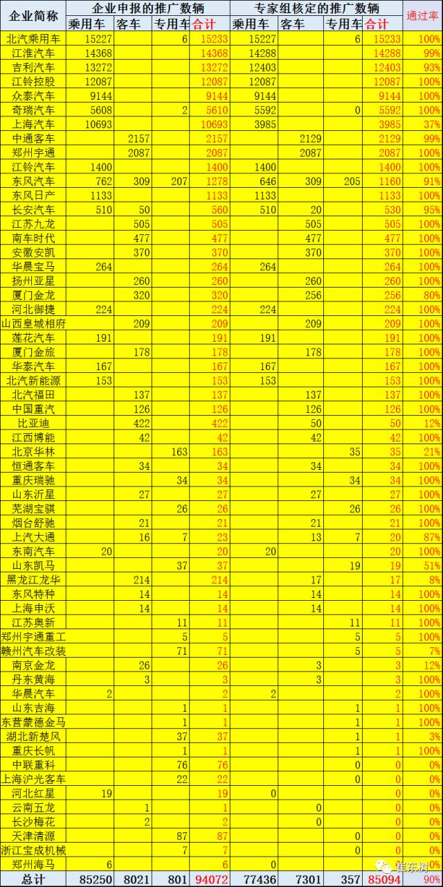 從推廣地區(qū)的省份來看,安徽申報(bào)20374輛最多(江淮和奇瑞兩大新能源汽車企業(yè)在此),北京15233輛,江西13600輛,上海10752輛,浙江17957輛。推廣大戶陜西和廣東省等幾個省目前沒有申報(bào),應(yīng)該還是在走地方政府審核流程。比亞迪的新能源在陜西和廣東等多地有生產(chǎn),暫且多放到陜西。