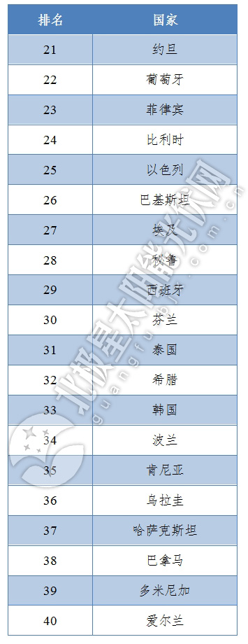 在該排行榜上,哈薩克斯坦(37),巴拿馬(38)和多米尼加共和國(guó)(39)為新來(lái)者。