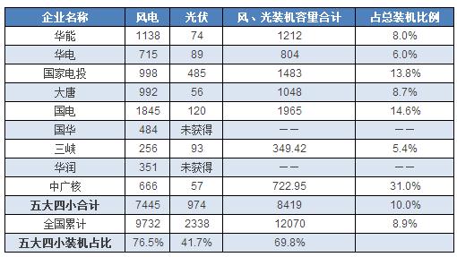 注:數(shù)據(jù)來(lái)源為王淑娟微信。未能找到國(guó)華、華潤(rùn)的光伏發(fā)電項(xiàng)目的裝機(jī)容量。