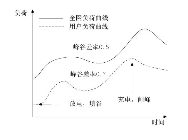 《基本規(guī)則》中的輔助服務(wù)條款中提出了調(diào)峰貢獻度的概念,“電力用戶峰谷差率小于全網(wǎng)峰谷差率時調(diào)峰貢獻度為正,電力用戶峰谷差率大于全網(wǎng)峰谷差率時調(diào)峰貢獻度為負。與貢獻度為正的電力用戶簽訂直接交易合同的電廠,免除相應(yīng)直接交易電量調(diào)峰補償費用的分攤。”用戶在進行輔助服務(wù)補償費用結(jié)算時,可通過儲能及靈活性資源對自身的負荷進行調(diào)節(jié)(如圖2所示),進而改善自身的調(diào)峰貢獻度。