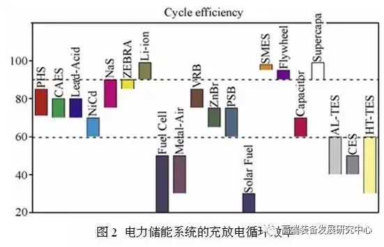 PHS-抽水蓄能;CAES-壓縮空氣;Lead-Acid:鉛酸電池;NiCd:鎳鎘電池;NaS:鈉硫電池;ZEBRA:鎳氯電池;Li-ion:鋰電池;Fuelcell:燃料電池;Metal-air:金屬空氣電池;VRB:液流電池;ZnbBr:液流電池;PSB:液流電池;SolarFuel:太陽能燃料電池;SMES:超導儲能;Flywheel:飛輪; Capacitor/ Supercapcitor:電容/超級電容;AL-TES:水/冰儲熱/冷系統(tǒng);CES:低溫儲能系統(tǒng);HT-TES:儲熱系統(tǒng)。