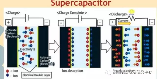 超級電容器儲能是用活性炭多孔電極和電解質(zhì)組成的雙電層結(jié)構(gòu)獲得超大的電容量。超級電容器的發(fā)展很快,目前以石墨烯材料為基礎的新型超級電容器是市場熱點。
