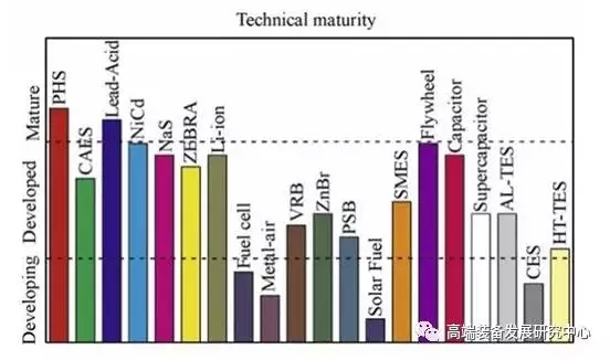 各類儲能技術(shù)的成熟度及優(yōu)缺點對比