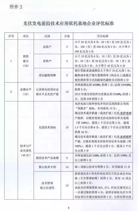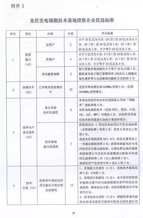 相比此前業(yè)界盛傳的“領(lǐng)跑者升級(jí)版”計(jì)劃,通知提出的“光伏發(fā)電前沿技術(shù)應(yīng)用依托基地”明顯縮水,每個(gè)基地建設(shè)規(guī)模確定為500M瓦(此前傳說(shuō)每個(gè)基地至少1GW),基地在2-3年內(nèi)建成,第一年內(nèi)建成規(guī)模不少于建設(shè)總規(guī)模的10%且不超過(guò)30%,在三年內(nèi)全部建成并促進(jìn)相應(yīng)前沿技術(shù)產(chǎn)業(yè)化。