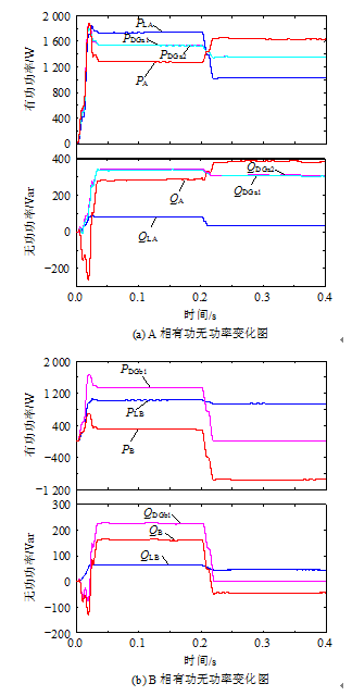 圖6混合微電網(wǎng)及其PSU各相的有功無功功率變化圖