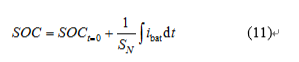 式中:IN為儲能電池所能承受的額定充放電電流;τ為冪系數(shù)。式(10)中SOC的具體計算方法如式(11)所示: