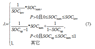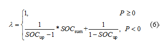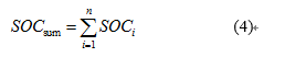 其中,SOClow為總剩余容量的下限閾值,SOCup為總剩余容量的上限閾值,SOCsum為系統(tǒng)總剩余容量,計算公式如下: