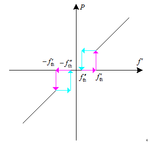 為此,本文在式(2)的基礎(chǔ)上加入滯環(huán)比較環(huán)節(jié),得到下垂控制曲線如圖3所示,圖中f′′th=f′th?εf″th=f′th?ε,通過改變εε可以調(diào)節(jié)滯環(huán)比較的門限寬度,通常取一個比較小的值。加入滯環(huán)比較環(huán)節(jié)后,由于比較門限的存在,可有效避免PSU的輸出發(fā)生抖動。