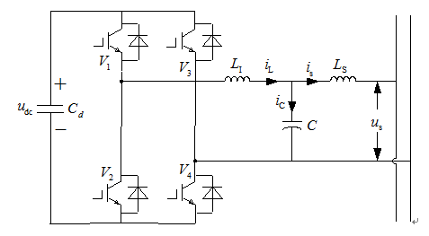 如圖1所示,PSU是由3組H橋變換器構(gòu)成的,其中每兩組H橋可以組成一個背靠背的變換器,可很好地實現(xiàn)能量雙向流動,H橋變換器的拓撲圖如圖2所示,圖中:LI、Ls為濾波電感;C為濾波電容;Cd為公共直流母線電容;us為混合微電網(wǎng)各相母線電壓;iL、iS分別為逆變器側(cè)和網(wǎng)側(cè)的電感電流。