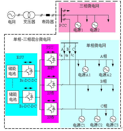 1、單相-三相混合微電網(wǎng)結(jié)構(gòu)