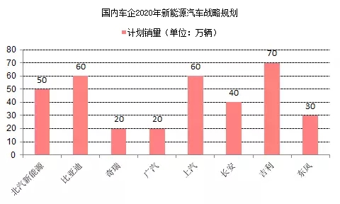 國內(nèi)方面:呈現(xiàn)群雄逐鹿的格局,其中北汽、比亞迪、上汽、吉利新能源汽車2020年規(guī)劃銷量均突破50萬輛,國內(nèi)主流廠商整體銷量預(yù)計突破300萬輛。