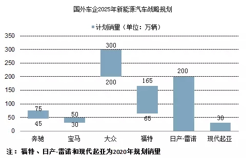 國外方面:主要車企紛紛發(fā)布新能源汽車2025生產(chǎn)計劃,實現(xiàn)新能源汽車銷售占總銷售的二至三成,國外車企合計將達到570-820萬輛。