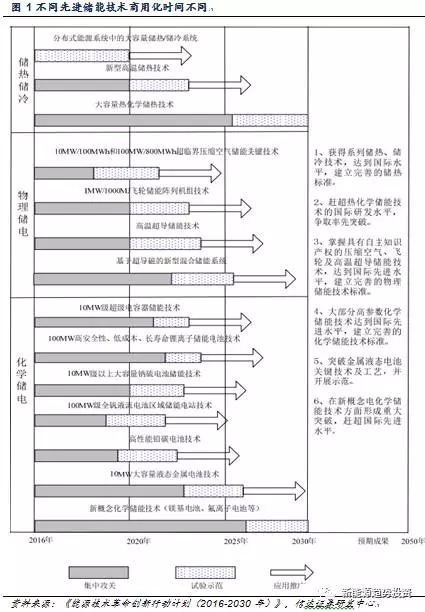 從技術(shù)的角度看,《能源技術(shù)革命創(chuàng)新行動(dòng)計(jì)劃(2016-2030年)》對(duì)不同的儲(chǔ)能技術(shù)在近、中、遠(yuǎn)期分別制定了不同的目標(biāo),可以看做是對(duì)儲(chǔ)能技術(shù)的戰(zhàn)略指導(dǎo)方向,但是文件針對(duì)的是先進(jìn)儲(chǔ)能技術(shù),從規(guī)劃的時(shí)間看,即使是發(fā)展進(jìn)度最快的分布式能源系統(tǒng)中的大容量?jī)?chǔ)熱/儲(chǔ)冷系統(tǒng)也要在2020年商業(yè)化推廣,而在此期間,對(duì)現(xiàn)有的儲(chǔ)能技術(shù)如何進(jìn)行支持則并沒(méi)有提及。