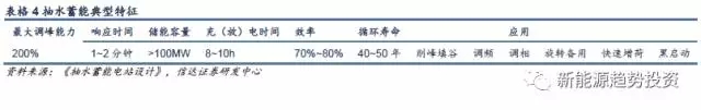 抽水蓄能的特點(diǎn)主要表現(xiàn)為儲(chǔ)能容量大(百兆瓦起步),響應(yīng)時(shí)間相對(duì)燃?xì)鈾C(jī)組及火電機(jī)組要短,充放電時(shí)間長(zhǎng),循環(huán)壽命是所有儲(chǔ)能技術(shù)中最長(zhǎng)的,因此可以用于能量時(shí)移、調(diào)頻、調(diào)相、黑啟動(dòng)等。