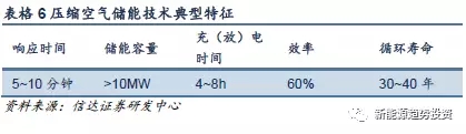傳統(tǒng)的壓縮空氣儲(chǔ)能是用電動(dòng)機(jī)驅(qū)動(dòng)多級(jí)壓縮機(jī)將空氣壓縮并存于儲(chǔ)氣單元中,在能量釋放時(shí),將高壓氣體從儲(chǔ)氣單元釋放。隨后通入多級(jí)透平膨脹做功,完成空氣壓力能到電能的轉(zhuǎn)換。其特點(diǎn)是容量大(可達(dá)100MW以上)、充放電時(shí)間長(zhǎng)、單位建造成本和運(yùn)行成本較低、系統(tǒng)壽命長(zhǎng)等。但是由于空氣儲(chǔ)能需要和燃?xì)廨啓C(jī)電站配套使用,效率只能達(dá)到60%左右,因此大大限制了其應(yīng)用范圍,同時(shí),啟動(dòng)時(shí)間較長(zhǎng)(僅比火電啟動(dòng)時(shí)間要短)也限制了其應(yīng)用場(chǎng)景。如德國(guó)在1978年就建成了290MW裝機(jī)容量的壓縮空氣儲(chǔ)能電站,其充氣時(shí)間為8h,放電時(shí)間為2h,將補(bǔ)燃所消耗的能量算在內(nèi)時(shí)系統(tǒng)效率只有46%。美國(guó)在1991年建成的空氣壓縮儲(chǔ)能電站裝機(jī)容量為110MW,充氣時(shí)間為41h,放電時(shí)間為26h,將補(bǔ)燃所消耗的能量算在內(nèi)時(shí)系統(tǒng)效率為54%。