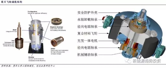 但是飛輪儲(chǔ)能的主要缺點(diǎn)在于其空載下的能量損失大,每小時(shí)超過(guò)2.5%。盡管飛輪儲(chǔ)能理論能量密度高達(dá)200-400Wh/kg,但是在實(shí)際應(yīng)用過(guò)程中,限于材料的因素,安全穩(wěn)定運(yùn)行的飛輪的儲(chǔ)能密度通常不高于100Wh/kg,此外,價(jià)格昂貴也是影響飛輪儲(chǔ)能推廣的因素之一。從技術(shù)研發(fā)的角度看,一方面將飛輪國(guó)產(chǎn)化以降低成本是大勢(shì)所趨,另一方面尋求新型飛輪材料以提升能量密度或者降低成本是飛輪儲(chǔ)能應(yīng)用推廣的關(guān)鍵??傮w上來(lái)說(shuō),由于飛輪儲(chǔ)能屬于功率型儲(chǔ)能,其應(yīng)用場(chǎng)景在于調(diào)頻,平滑新能源輸出波動(dòng)上,同時(shí)由于其放電時(shí)間較短(屬于分秒級(jí)應(yīng)用),目前主要應(yīng)用在UPS中。