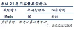 備用容量是指在滿足預(yù)計(jì)負(fù)荷需求以外,針對(duì)突發(fā)情況時(shí)為保障電能質(zhì)量和系統(tǒng)安全穩(wěn)定運(yùn)行而預(yù)留的有功功率儲(chǔ)備,一般備用容量需要在系統(tǒng)正常電力供應(yīng)容量的15~20%,且最小值應(yīng)等于系統(tǒng)中單機(jī)裝機(jī)容量最大的機(jī)組容量。在我國(guó),備用容量服務(wù)分為旋轉(zhuǎn)備用、非旋轉(zhuǎn)備用和其他備用。備用容量一般應(yīng)用在發(fā)電機(jī)組在下線到上線的這段時(shí)間內(nèi),放電時(shí)間相對(duì)較短,但是要求有較大的功率來(lái)將儲(chǔ)存的能量在短時(shí)間內(nèi)釋放出去,因此是功率型應(yīng)用。