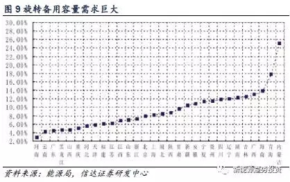 在現(xiàn)有的政策及技術(shù)條件下,我們認(rèn)為低成本技術(shù)將會(huì)占據(jù)先發(fā)優(yōu)勢(shì),而剛需應(yīng)用場(chǎng)景為各儲(chǔ)能技術(shù)大幅降低成本帶來(lái)契機(jī)。在技術(shù)端,國(guó)內(nèi)在抽水蓄能、鉛炭電池及鋰電池這三方面技術(shù)積累最多,應(yīng)用時(shí)間最長(zhǎng),使用規(guī)模最大,因此是應(yīng)用首選。而在應(yīng)用場(chǎng)景端,由于政策標(biāo)準(zhǔn)及補(bǔ)貼的缺失,目前要大規(guī)模使用儲(chǔ)能,一是技術(shù)本身比較成熟,成本較低,二是應(yīng)用場(chǎng)景有剛需,同時(shí)本身有補(bǔ)貼可以覆蓋這部分成本。從這個(gè)角度看,新能源發(fā)電側(cè)將是儲(chǔ)能爆發(fā)的起點(diǎn),由于風(fēng)光出力波動(dòng)大的特性使得電網(wǎng)中新能源的比例不超過(guò)15%,而以目前風(fēng)光電站裝機(jī)量增速以及“三北”地區(qū)棄風(fēng)棄光的狀況來(lái)看,風(fēng)光配儲(chǔ)能已經(jīng)到了不得不裝的地步了。一旦通過(guò)儲(chǔ)能平滑風(fēng)光出力曲線,則電網(wǎng)無(wú)需再為發(fā)電側(cè)的波動(dòng)擔(dān)憂,新能源消納問(wèn)題也將得到緩解。此外鋰電池隨著新能源汽車(chē)數(shù)量的增加而快速發(fā)展,其成本也在快速下降,隨著新能源汽車(chē)的規(guī)模進(jìn)一步擴(kuò)大,鋰電池的成本將有望持平甚至低于鉛炭電池,同時(shí)新能源汽車(chē)本身也可看作移動(dòng)式儲(chǔ)能,未來(lái)有著巨大的發(fā)展?jié)摿Α?