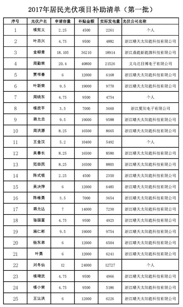 中國儲能網(wǎng)訊:根據(jù)《浙江省人民政府關于進一步加快光伏應用促進產(chǎn)業(yè)健康發(fā)展的實施意見》(浙政發(fā)〔2013〕49號)、《關于轉發(fā)國家發(fā)展改革委發(fā)揮價格杠桿作用促進光伏產(chǎn)業(yè)健康發(fā)展的通知》(浙價資〔2014〕26號)等文件精神,現(xiàn)對我市第一批居民光伏發(fā)電補助項目進行公示,具體名單見附表。