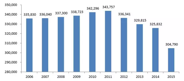 (圖2:美國煤炭火力發(fā)電裝機(jī)總量走勢圖 單位:MW 來源美國能源信息署EIA)
