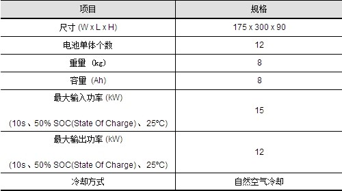 ■新開發(fā)的中度油電混合汽車用48V鋰離子電池組的規(guī)格
