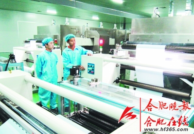 在與國軒電池同一條馬路相對(duì)一側(cè)的不遠(yuǎn)處,合肥星源新能源材料有限公司的工人們,也在生產(chǎn)車間忙碌著,總投資30億元的這家公司生產(chǎn)鋰電池濕法隔膜及涂覆隔膜。