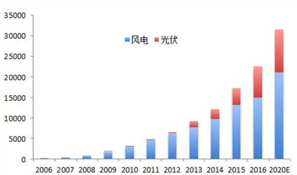 2013年8月,發(fā)改委發(fā)布《關(guān)于發(fā)揮價格杠桿作用促進光伏產(chǎn)業(yè)健康發(fā)展的通知》,光伏行業(yè)回歸標(biāo)桿電價,與風(fēng)電一樣,按照實際發(fā)電量進行補貼。加上光伏組件價格下降、轉(zhuǎn)化率提升的雙重利好,此后我國光伏裝機容量迅猛增長,目前每瓦建造成本已經(jīng)低于風(fēng)電,部分地區(qū)光伏項目招標(biāo)電價已經(jīng)接近甚至低于風(fēng)電標(biāo)桿電價,大有趕超之勢。
