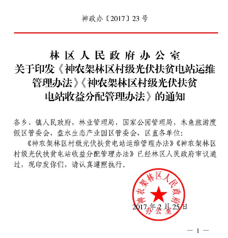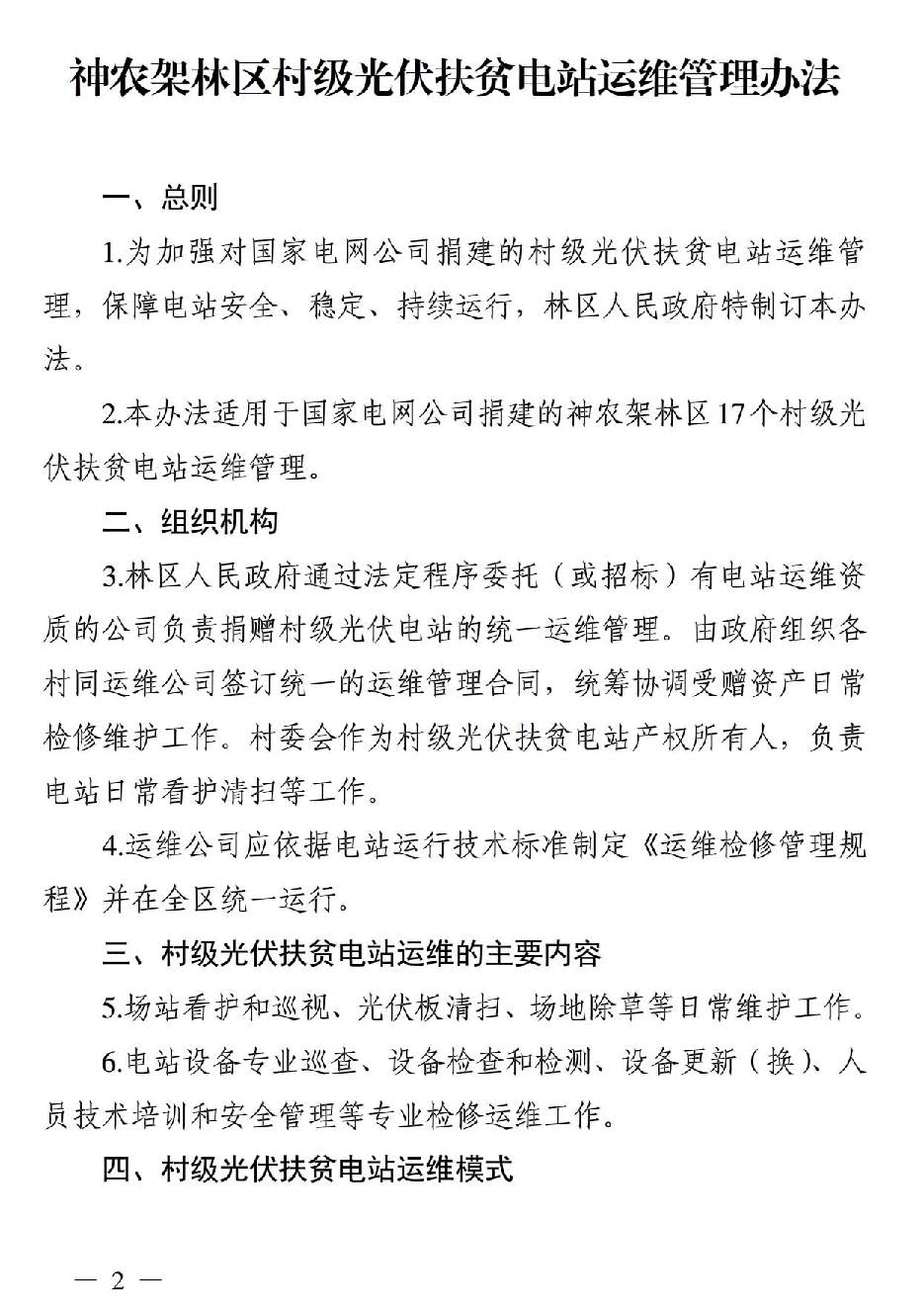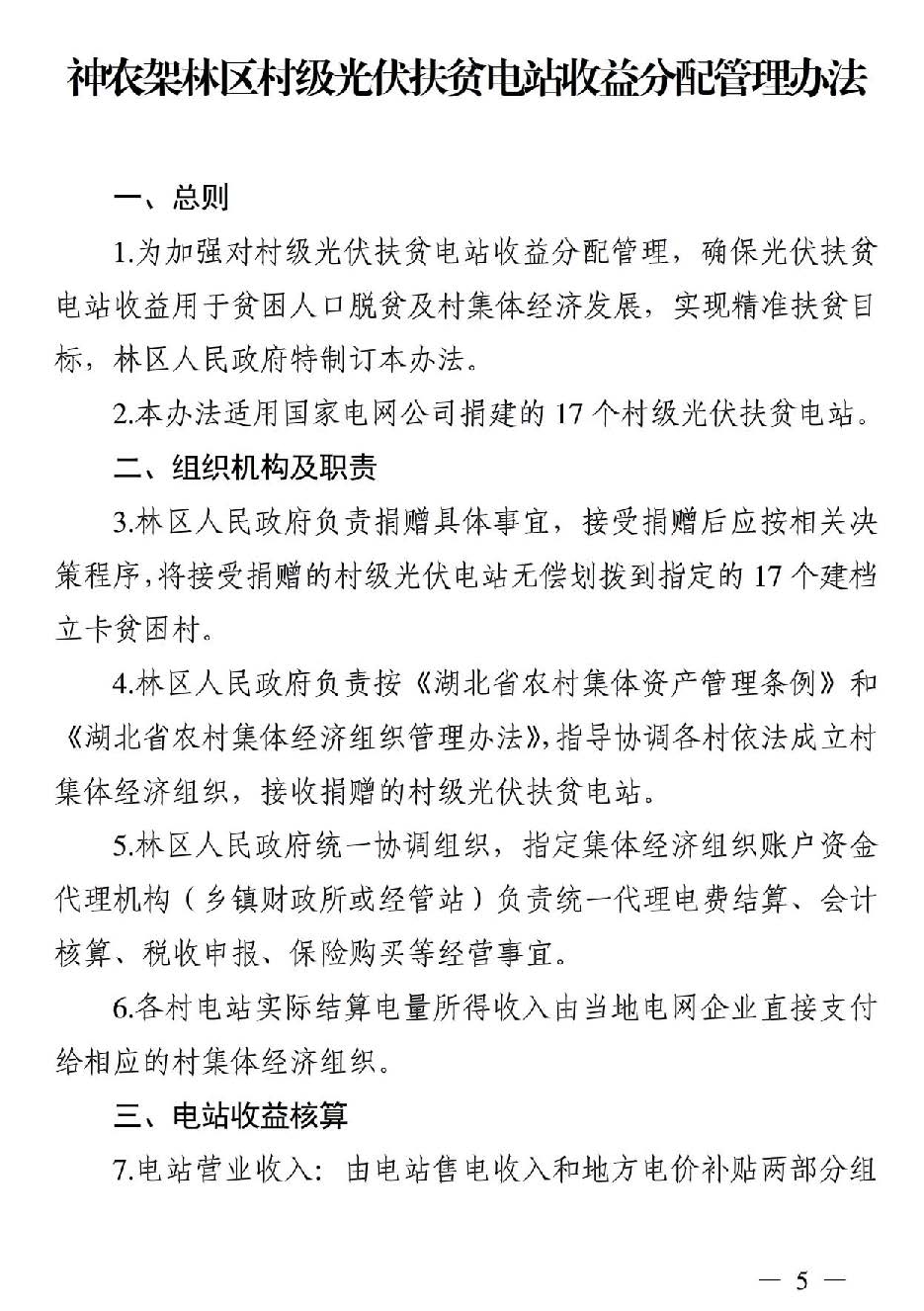 湖北神農(nóng)架林區(qū)關(guān)于村級光伏扶貧電站運維和收益分配管理辦法