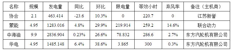 各風(fēng)電場(chǎng)5月份發(fā)電量 單位:萬(wàn)千瓦、萬(wàn)千瓦時(shí)
