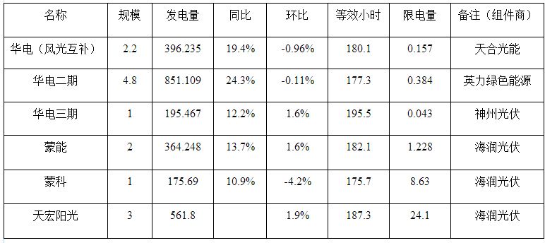 各光伏電場(chǎng)5月份發(fā)電量 單位:萬(wàn)千瓦、萬(wàn)千瓦時(shí)