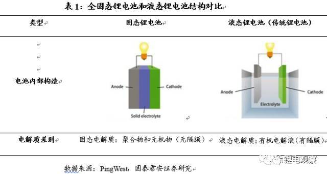 ? 在電解質(zhì)方面,固態(tài)鋰電池采用聚合物、無機物等固態(tài)電解質(zhì)替代了傳統(tǒng)鋰電池中的液態(tài)電解質(zhì)(有機電解液),當(dāng)前主要以thio-LISICON硫化物、氧化物、聚合物和硼氫化鋰基等作為固體電解質(zhì),這是二者的核心差異,正是由于這種差異,電解質(zhì)鹽、隔膜與黏接劑等化學(xué)物質(zhì)都不再使用,全固態(tài)鋰電池結(jié)構(gòu)大為簡化。目前電解質(zhì)的研究主要集中在高電導(dǎo)率的復(fù)合型電解質(zhì)等研發(fā)。