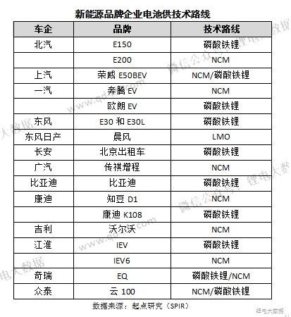 早在2014年下半年以前,磷酸鐵鋰電池是純電動乘用車的主流電池路線,2014年下半年開始,主流乘用車企業(yè)除比亞迪、上汽外均將三元鋰電池運用于上市車型,包括長安、一汽、北汽、奇瑞、江淮、眾泰等企業(yè)。這些車型電池容量在20-30kwh之間,續(xù)航里程150-250km之間。