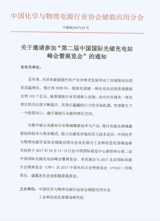 關(guān)于邀請(qǐng)參加“第二屆中國(guó)國(guó)際光儲(chǔ)充電站峰會(huì)暨展覽會(huì)”的通知