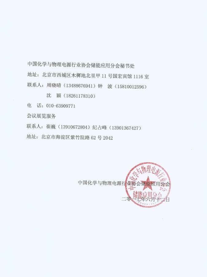 中國(guó)化學(xué)與物理電源行業(yè)協(xié)會(huì)儲(chǔ)能應(yīng)用分會(huì)秘書處
