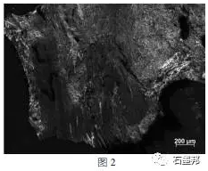 圖2對(duì)應(yīng)原料b的偏光照片,結(jié)果顯示原料b以鑲嵌型光學(xué)結(jié)構(gòu)為主,取向性較好;