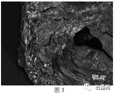 圖3對(duì)應(yīng)原料c的偏光照片,結(jié)果顯示其以流線型和流域性結(jié)構(gòu)為主,取向性較差。