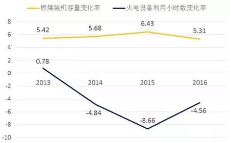 中國(guó)的能源規(guī)劃中包含了調(diào)整能源結(jié)構(gòu)的目標(biāo),中央政府也要求地方政府根據(jù)當(dāng)?shù)毓┬栊蝿?shì)和國(guó)家的能源規(guī)劃核準(zhǔn)煤電項(xiàng)目。但結(jié)果卻是,各省之間展開煤電項(xiàng)目的建設(shè)競(jìng)賽,電網(wǎng)公司分配給電廠的發(fā)電計(jì)劃指標(biāo)一再縮減,煤電機(jī)組的利用小時(shí)數(shù)也不斷下降。2016年,中國(guó)6 MW及以上火電廠的設(shè)備利用小時(shí)數(shù)降至近年來的最低水平(圖4)。