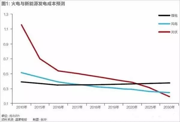 近年來,風(fēng)、光發(fā)電的技術(shù)進步很快。單體風(fēng)機的功率不斷增大,適應(yīng)低風(fēng)速發(fā)電的風(fēng)機已推廣應(yīng)用,太陽能電池和組件的轉(zhuǎn)換效率持續(xù)改進。與此同時,新能源的發(fā)電成本也在快速下降。風(fēng)電設(shè)備和光伏組件的價格,在過去的五年里下降幅度分別超過了20%和60%。美國風(fēng)電長期購電協(xié)議價格已與化石能源發(fā)電達到同等水平,德國新增的新能源電力基本實現(xiàn)與傳統(tǒng)能源平價。我國部分地區(qū)新能源的價格已經(jīng)與煤電價格相當(dāng),預(yù)計到2030年,光伏發(fā)電成本可以達到0.2元/千瓦時,風(fēng)電達到0.22元/千瓦時(見圖表1)。