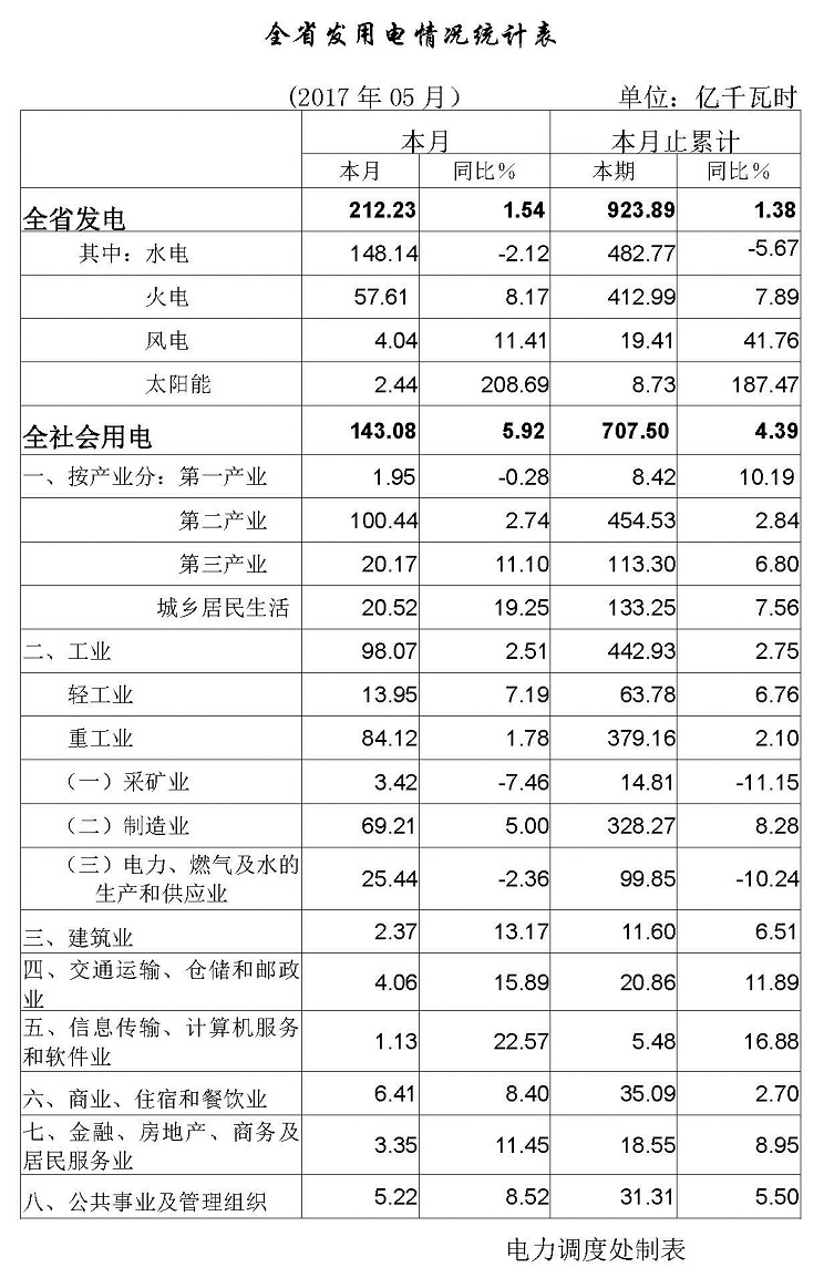 5月份,全省全社會用電143.08億千瓦時,增長5.92%,其中工業(yè)用電98.07億千瓦時,增長2.51%。